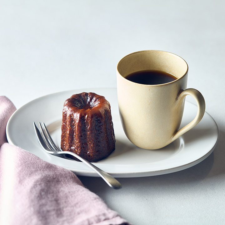 「カヌレ」と相性の良いコーヒーは、ローストナッツのような香ばしさにクリーミーな舌触りのブラジル。「カヌレ」の香ばしい味わいとコーヒーの苦味が重なり和らぐことで、コーヒーのもつドライフルーツのような甘くフルーティーな印象が引き出されます。