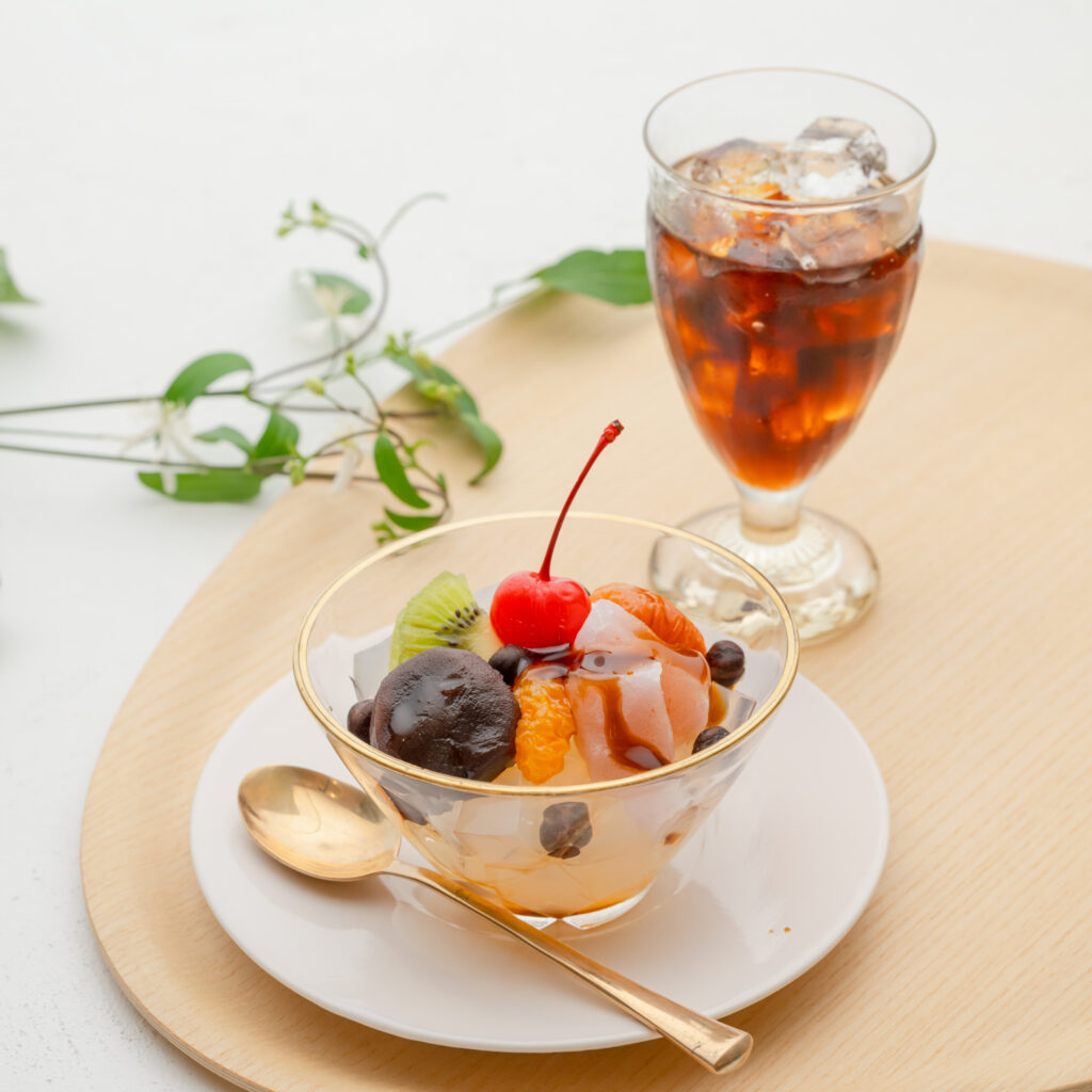 寒天、あんこ、フルーツなど様々な素材が楽しめるあんみつには、酸味・苦味・コクのバランスが整った「ブルーマウンテンブレンド」を。ブラウンシュガーのような上品な甘さが、あんこの風味や黒みつとも好相性。アイスコーヒーはもちろん、抽出したてではなく少しだけ温度を落ち着かせたコーヒーと合わせると、香りが引き立ち、やさしい甘さと調和した和洋折衷の一杯が楽しめます。