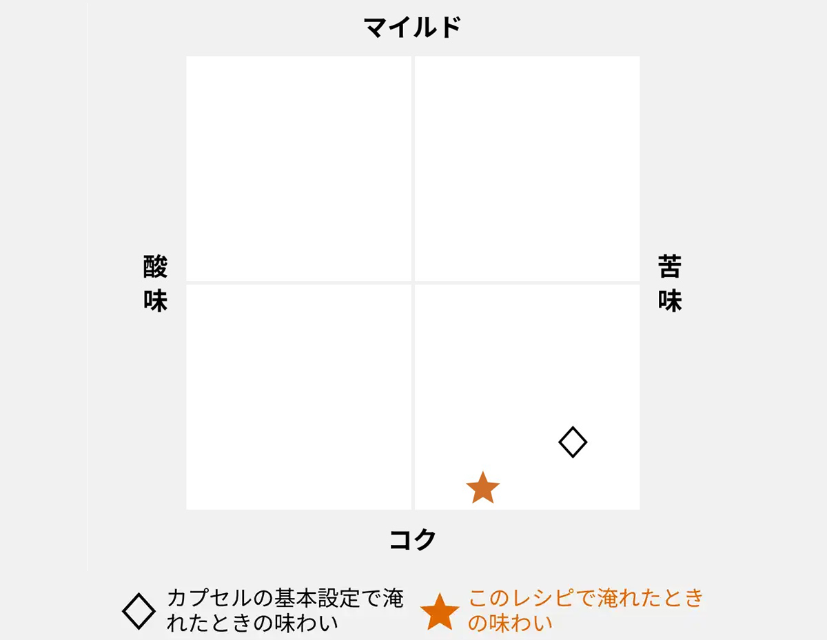 後半では、前半の抽出よりもさらに温度を下げてじっくり抽出することで、苦味を押さえバランスの良い味わいに仕上げています。