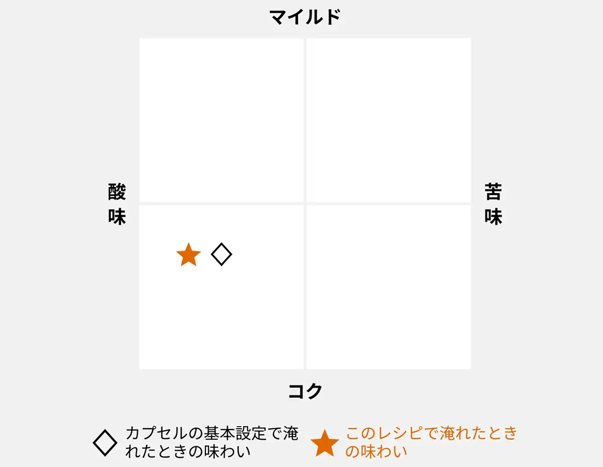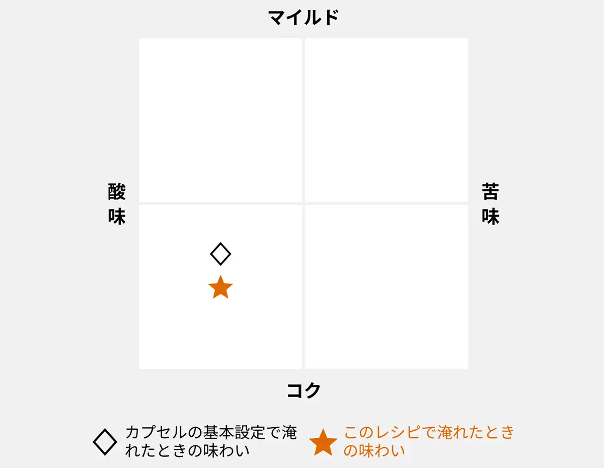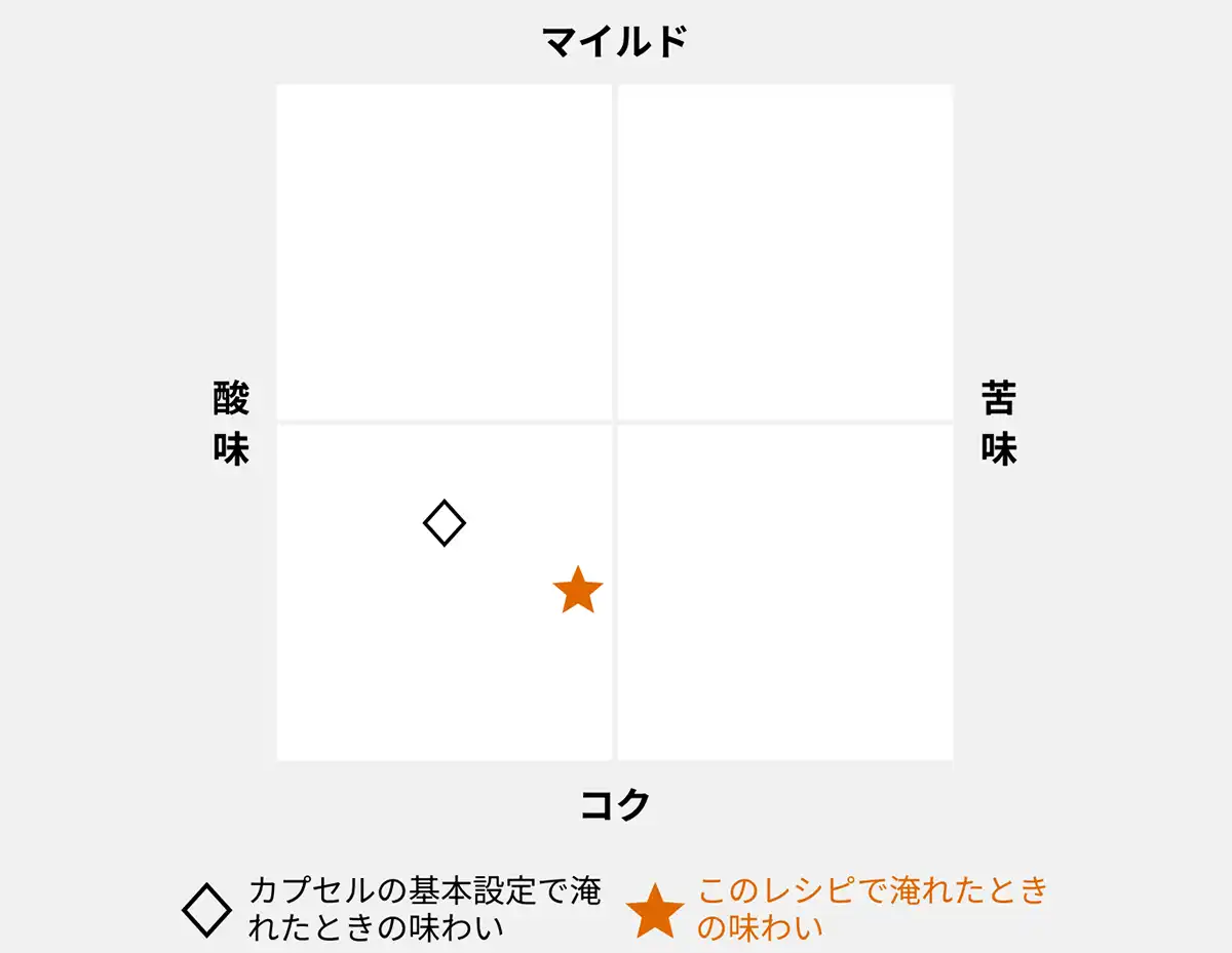 完熟プラムやチェリーの甘みが口いっぱいに広がり、カカオのスパイシーなアクセントが上品な奥行きを生み出す一杯です。