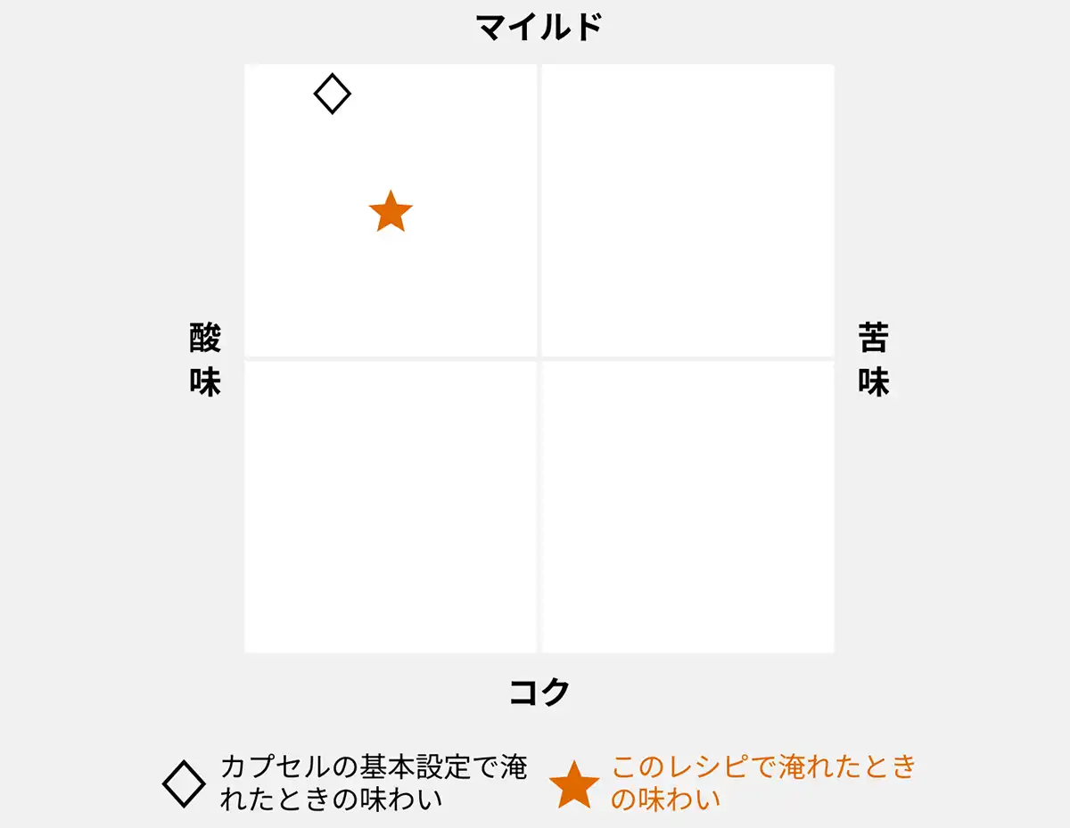 温度が少しずつ下がると、グレープフルーツの爽やかさが顔をのぞかせ、時間とともに移り変わる風味をじっくりと味わえる一杯です。