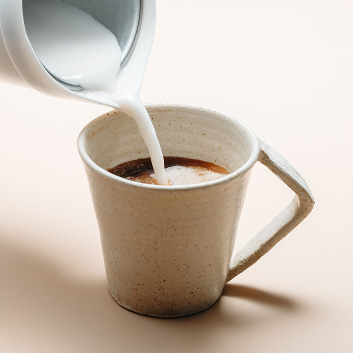 成分無調整の牛乳を選ぶと、 濃厚でクリーミーに。低脂肪乳を選ぶと、すっきり軽やかなカフェオレに仕上げることができます。