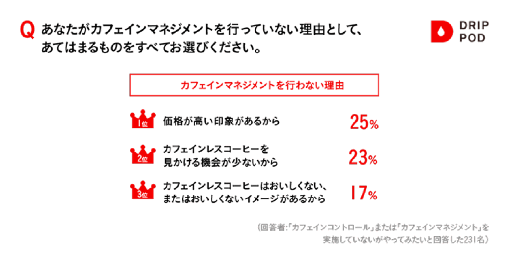 ※カフェインマネジメント:コーヒーの代わりにカフェインレスコーヒーを意図的に選ぶように、カフェインの摂取量を調整すること。