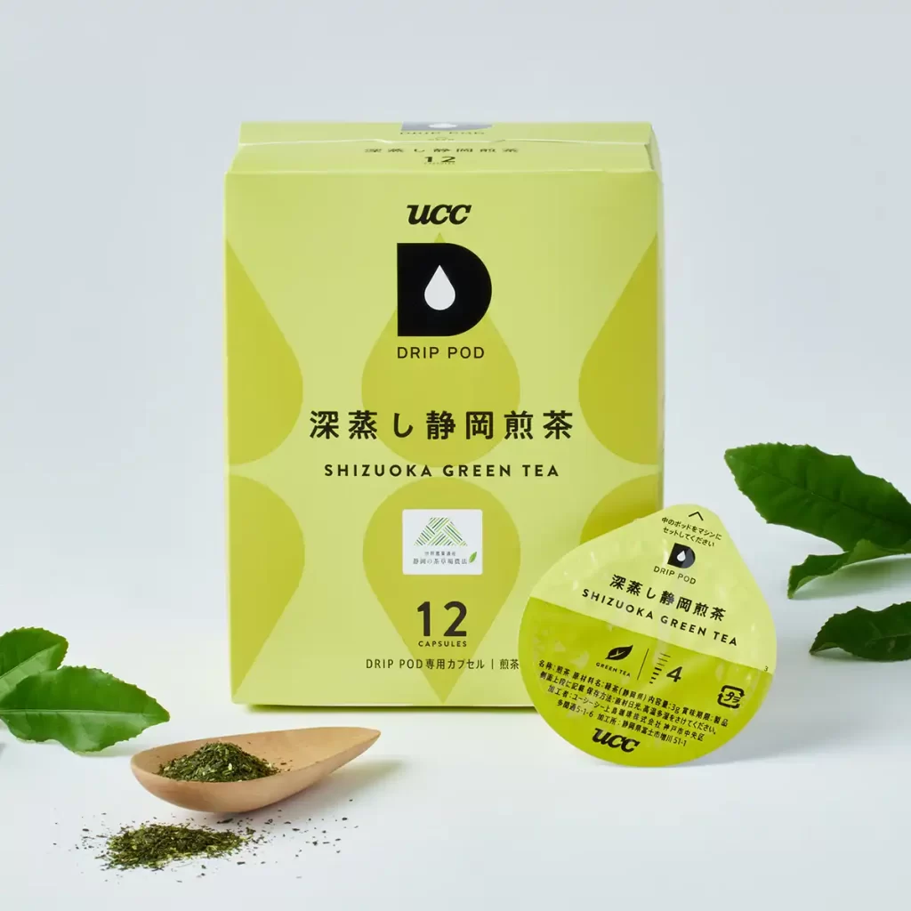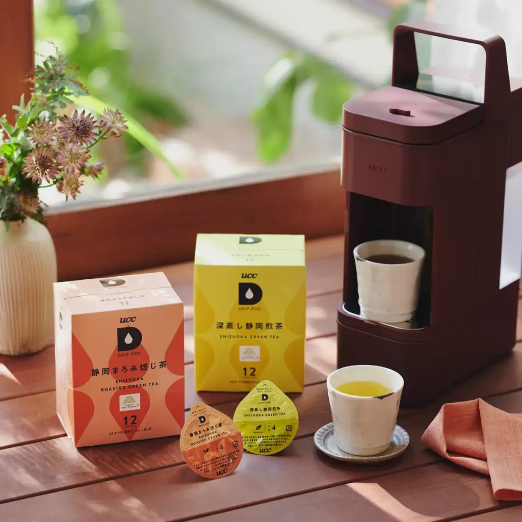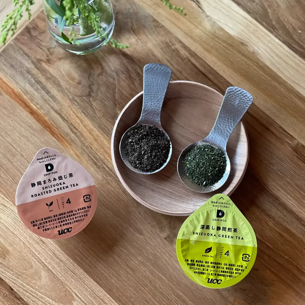 ドリップポッドでは、抽出温度・速度・蒸らし時間まで緻密にプログラムされており、誰が淹れても安定したおいしさが楽しめます。「深蒸し静岡煎茶」では鮮やかな水色と甘み、「静岡まろみ焙じ茶」では芳ばしさとまろやかさが際立ち、どちらも忙しい日常に“ほっとひと息”をもたらしてくれる一杯です。