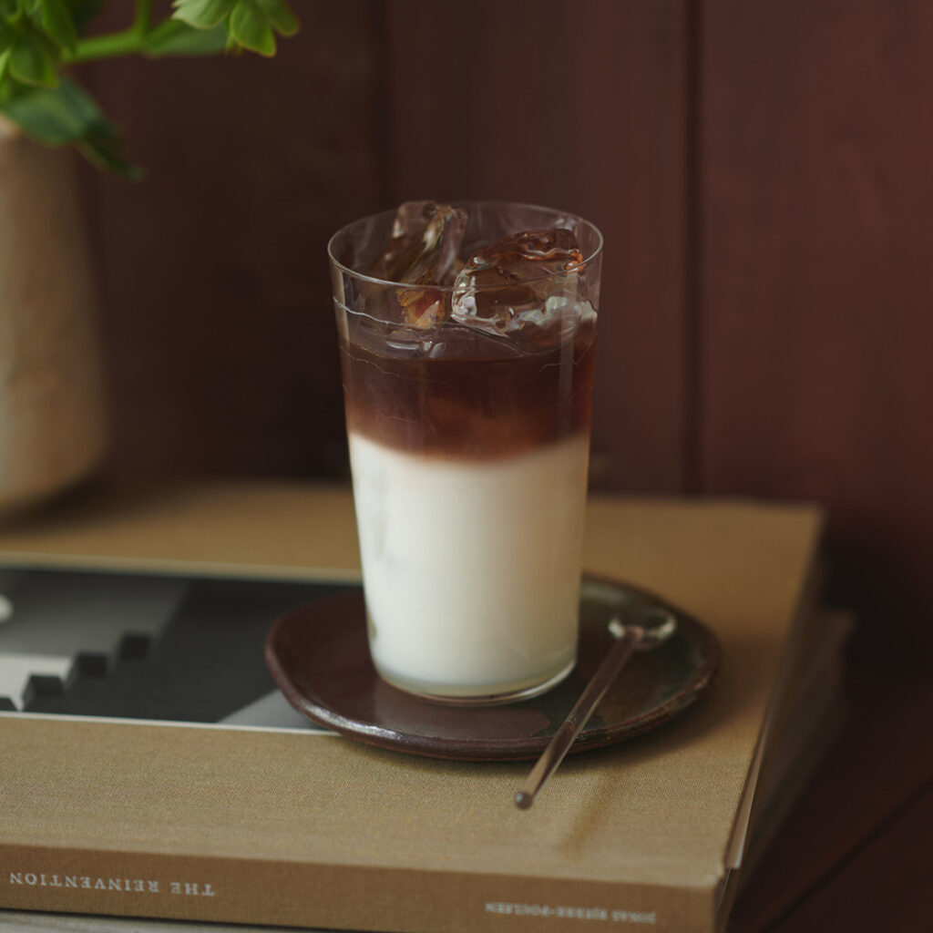 後味の香ばしいアーモンドのフレーバーをさらに引き出したアイスコーヒー専用レシピ。アーモンドミルクを加えれば、ナッティなフレーバーが楽しめるカフェオレに。最中やゴマ団子など、香ばしい風味をもつ和菓子とも相性抜群です。