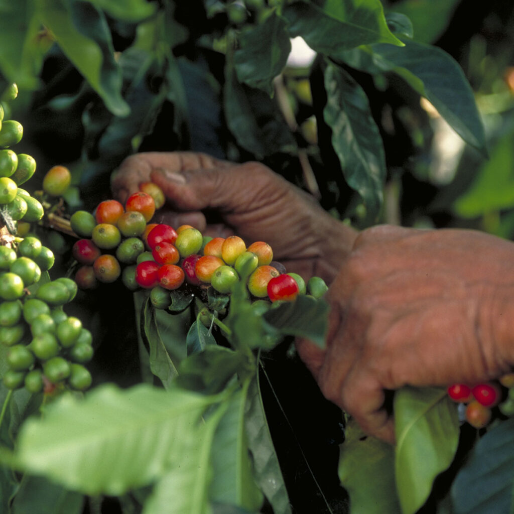 コナコーヒーの主な品種は、アラビカ種の中でも原種に近い「ティピカ」。特にハワイ島で育ったティピカは、大粒で青みがかった美しい緑色の生豆となり、上品な香りとまろやかな酸味、すっきりとした甘みが特徴です。