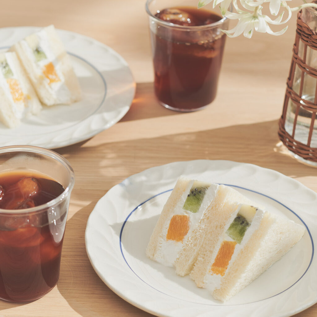 生クリームのコクのある甘さとフルーツの酸味が重なり合うフルーツサンドには、爽やかな味わいのアイスコーヒーがよく合います。フルーツの甘酸っぱさと、アイスコーヒーのもつ香りが重なり合い、まるでフルーツパフェとコーヒーを一緒に楽しんでいるような、明るく軽やかな味わいが楽しめます。