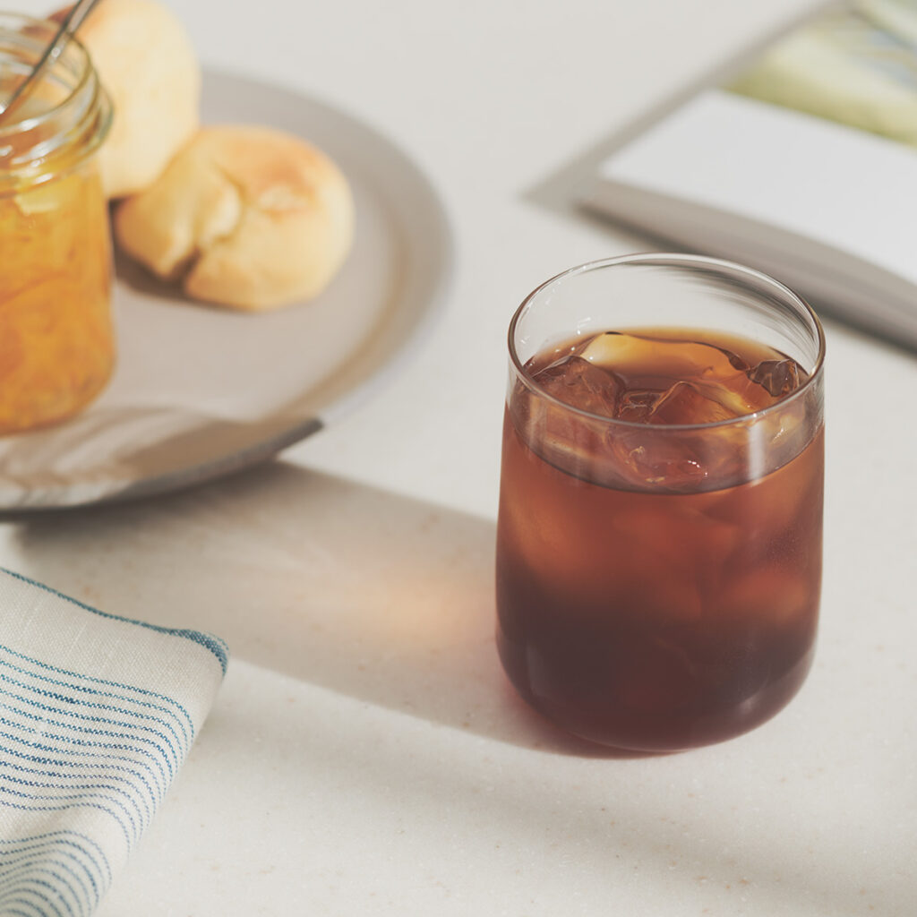 深炒りならではのコクとダークチョコレートを思わせるほろ苦さが印象的な一杯。キレのある後味と、飲み進めるほどにじんわりと広がるほのかな甘みの余韻が長く続くアイスコーヒーです。氷が溶けても味わいの輪郭がぼやけにくいので、ゆっくりと味わいたい時におすすめです。